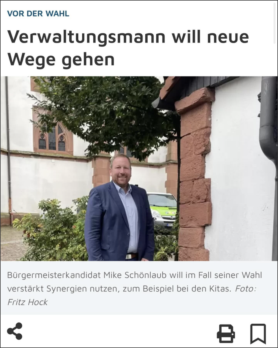 Heute ist ein sehr gut recherchierter Artikel über mich und meine Kandidatur in der RheinPfalz erschienen. Ein großes Dankeschön an die Tagespresse, dass sie dieses wichtige Thema aufgegriffen hat und an den Redakteur Fritz Hock, der immer sachlich und korrekt über die Themen der Orts- und Verbandsgemeinde Kandel berichtet.