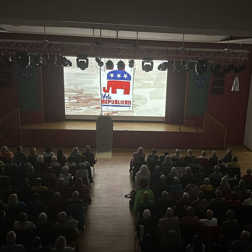 Rund 150 Menschen schauen gerade den Film in der Stadthalle in Kandel. Der Film bringt Heiterkeit und viel Gelächter. Und vor allem, dank dem Landkreis Germersheim für umme, danke hierfür.